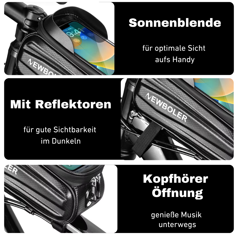 Schlüssel, Handy, Snacks – alles stört beim Treten? Mit der NEWBOLER 2 L Bike Bag hast du alles griffbereit, ohne dich in deiner Bewegungsfreiheit einzuschränken. Wetterfest, stoßgeschützt und direkt am Rahmen befestigt – perfekt für unterwegs.